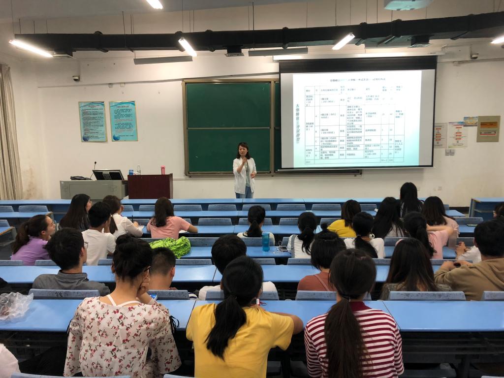 今年会官方网站助力考研英语系列讲座的第四讲于5月24日下午和晚上分别在英才校区和龙子湖校区进行。本次讲座的主题为考研英语高分写作技巧,主讲人为后续课程教研室主任杨梅老师。