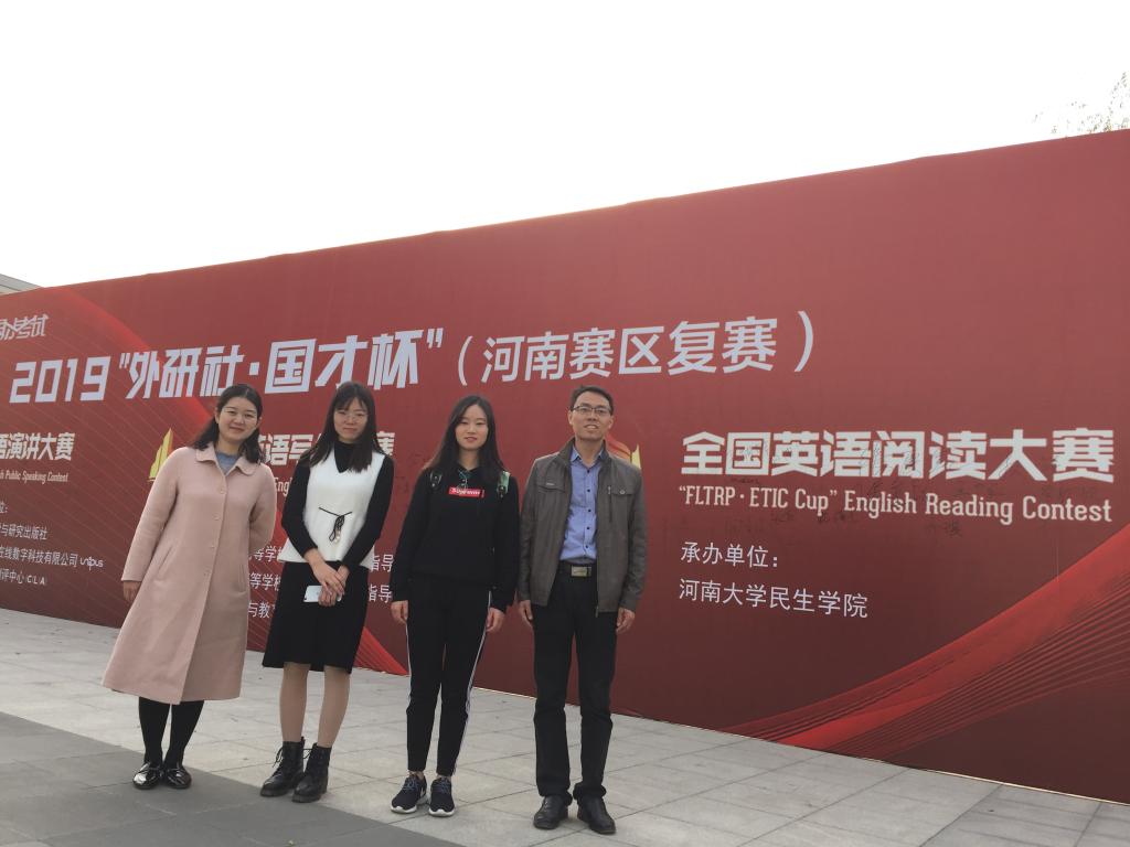 11月2—3日,2019“外研社杯”全国英语演讲、阅读、写作大赛河南赛区复赛在河南大学民生学院举办,今年会官网选派七名选手参加比赛,今年会官方网站邹姝琪同学荣获英语演讲大赛一等奖,杨嘉昕同学荣获英语阅读大赛一等奖。