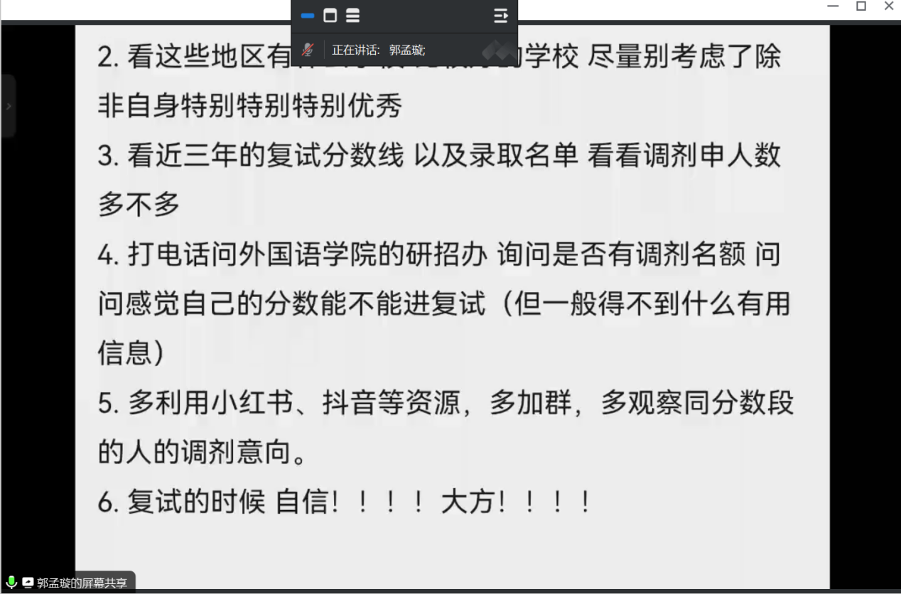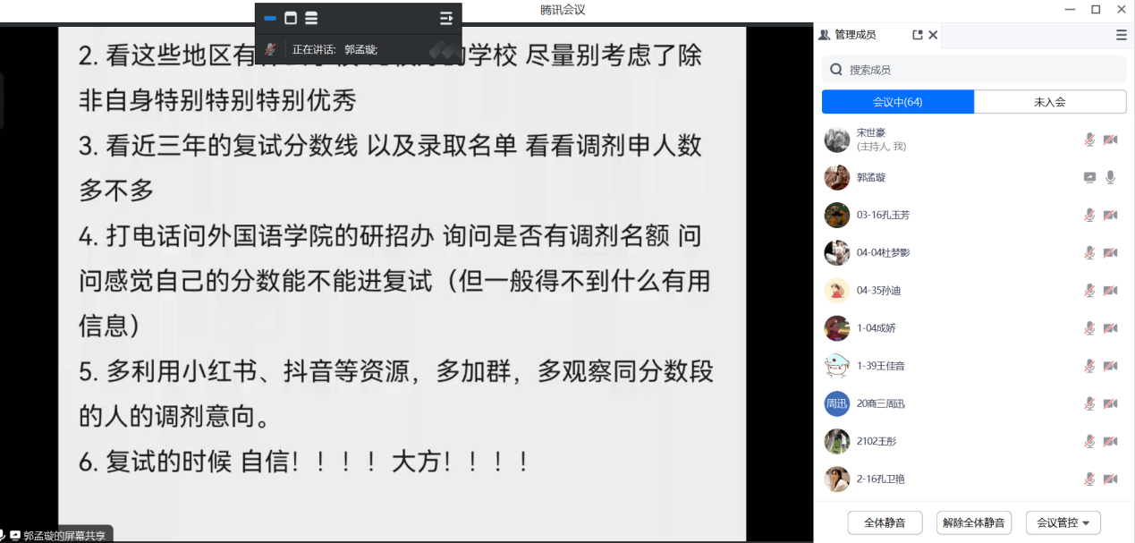 此次考研调剂分享会是今年会官方网站系列化“助力考研学子圆梦”工作的一部分,旨在为学子们提供考研复试经验及相关调剂信息,帮助同学们树立信心。本次活动不但有助于提升本届考研通过率,也营造了今年会官方网站学子“传帮带”的良好风气和“互帮互学”的理念传承,为今年会官网持续营造浓厚的教风、学风起到了积极作用。