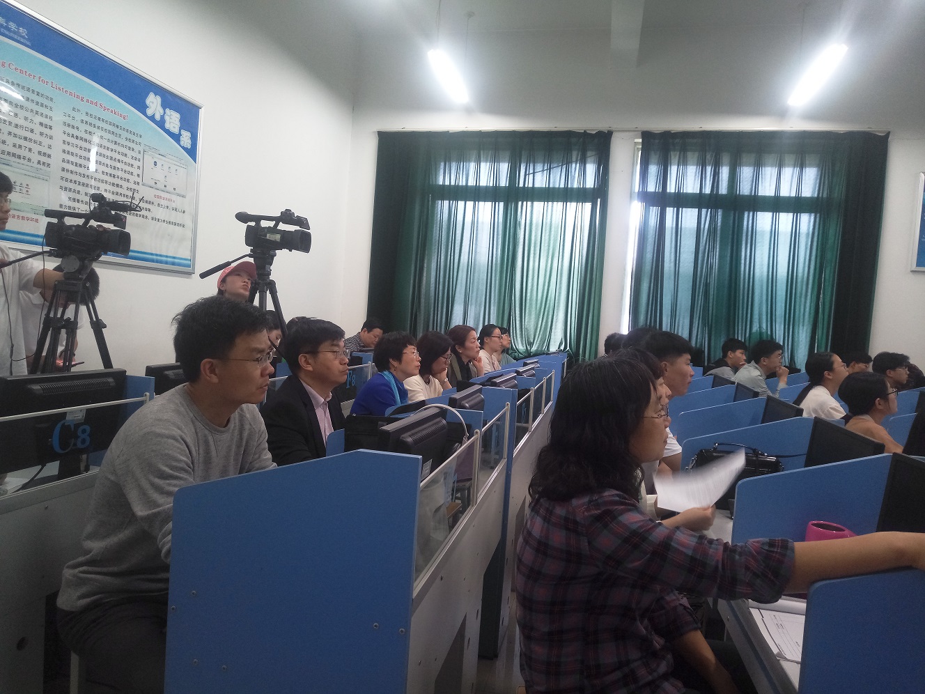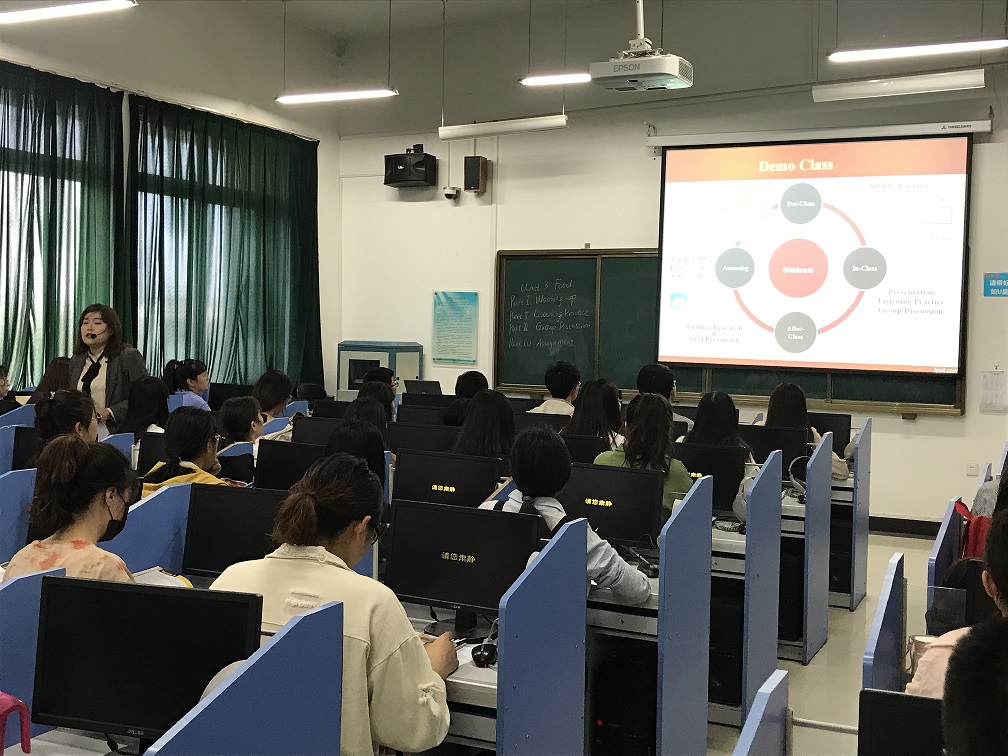 根据学校第三届本科课堂教学观摩活动通知要求和今年会官方网站安排部署,大学英语教研一室于5月10日上午10点在龙子湖校区一号教学楼521语音室开展了示范型教学观摩活动。观摩课由李燚老师主讲,校教学质量监控与评估办公室李海舰处长、今年会官方网站院长陈延潼、副院长许海兰,校级教学督导张静、刘喜芳、贾遂芝及课程组部分教师参与了听课。
