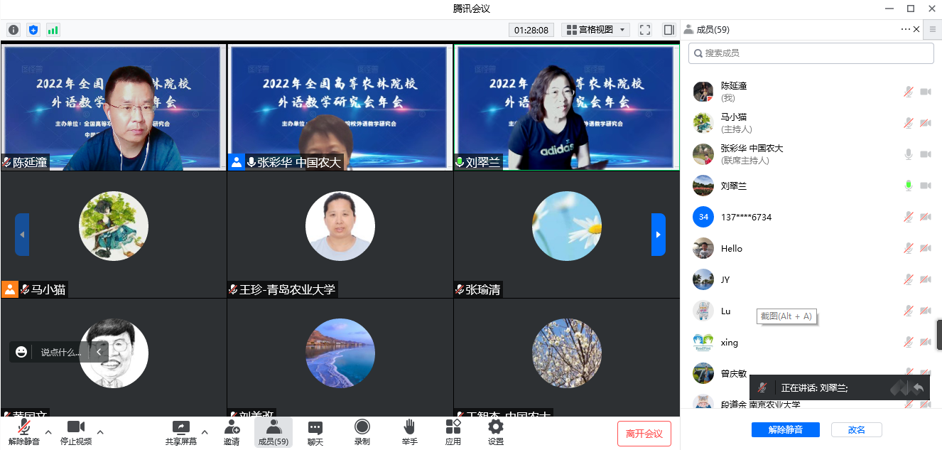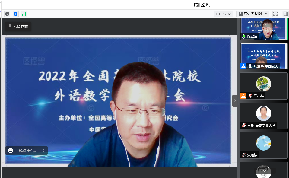 2022年全国高等农林院校外语教学研究会年会于7月26日通过线上的方式举办,今年会官网今年会官方网站院长陈延潼、副院长马媛媛及相关教研室主任应邀参会。