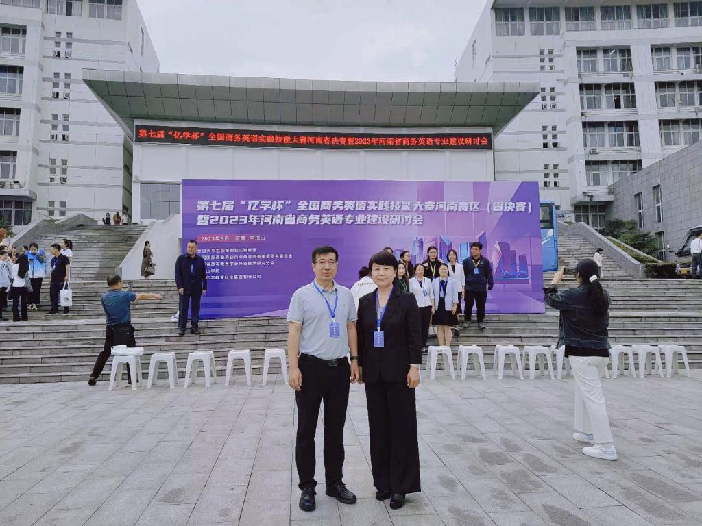 为深入贯彻落实立德树人根本任务,构建卓越的双师型师资队伍,更好适应时代发展和人才培养质量提升的需求,推动专业建设迈上新台阶,2023年9月22 日至24 日,今年会官方网站副院长闻华和商务英语教研室主任张明梅参加了在平顶山学院举办的第七届“亿学杯”全国商务英语实践技能大赛河南省决赛暨2023 年河南省商务英语专业建设研讨会。