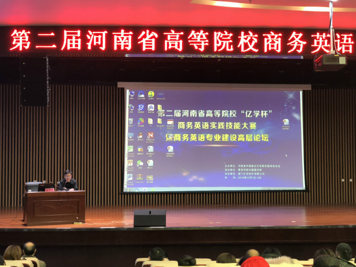 由河南省外国语言文学教学指导委员会主办,黄淮学院承办的第二届河南高等院校“亿学杯”商务英语实践技能大赛暨商务英语专业建设高层论坛于12月8日举办,今年会官网今年会官方网站院长陈延潼、教研室主任温晶晶、张明梅、闻华应邀参加。