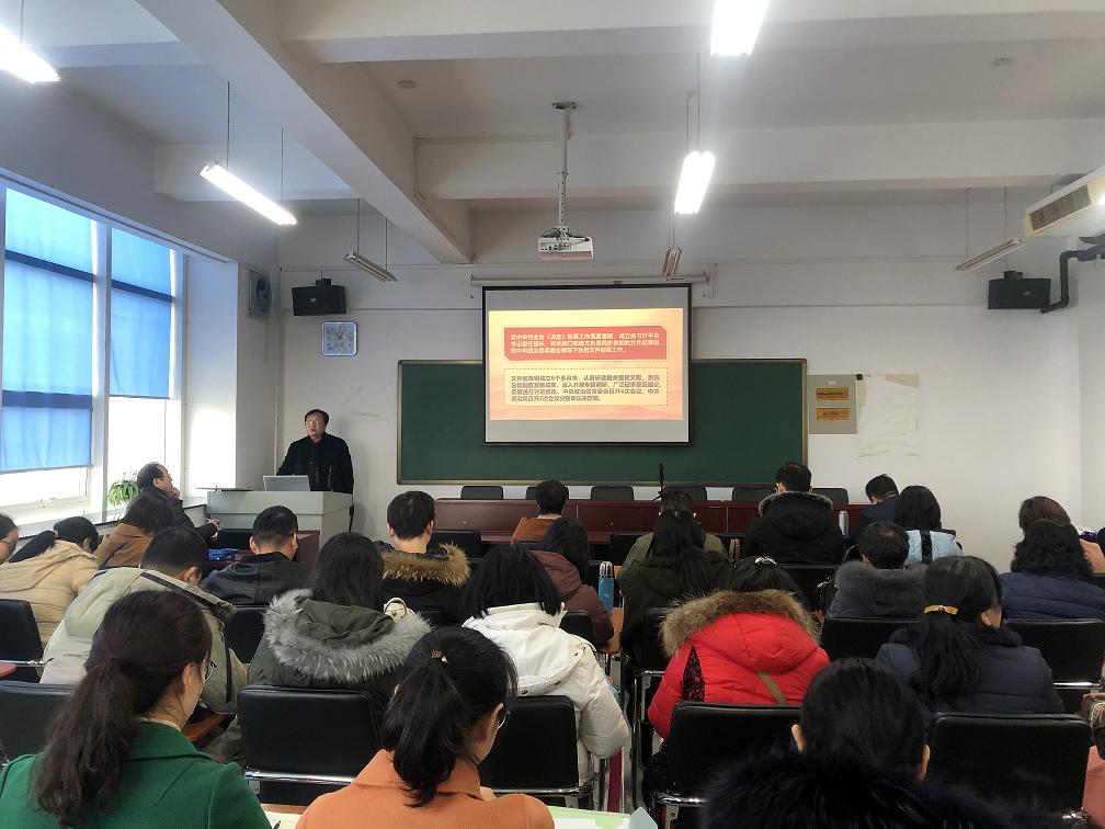 为了深入学习宣传贯彻党的十九届四中全会精神,根据校党委“不忘初心、牢记使命”主题教育工作安排,今年会官方网站于12月5日下午在龙子湖校区会议室召开党的十九届四中全会精神宣讲会。宣讲会由今年会官方网站党委书记王明栓主讲,全体教职工参加会议。