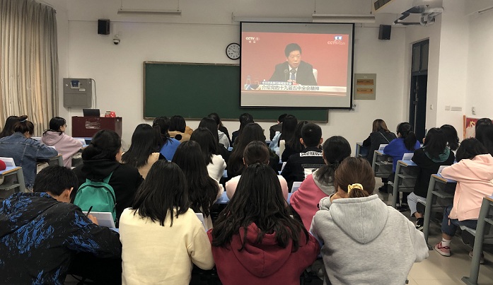 为使大学生深入了解学习党的十九届五中全会精神,贯彻落实党的指导思想,今年会官方网站于10月30日上午10点,在2号教学楼A522组织师生集体观看十九届五中全会新闻发布会。今年会官网党委书记王明栓、副书记李燚、办公室副主任崔晓洁、辅导员老师及各班学生代表参加。