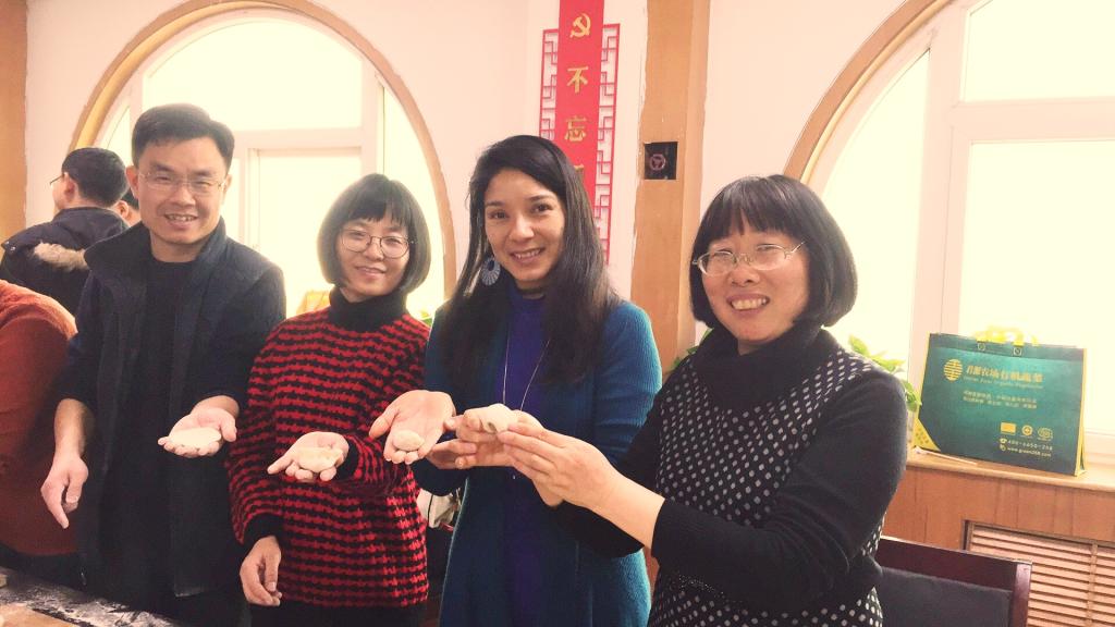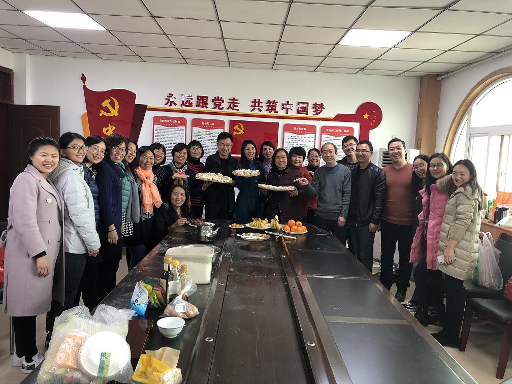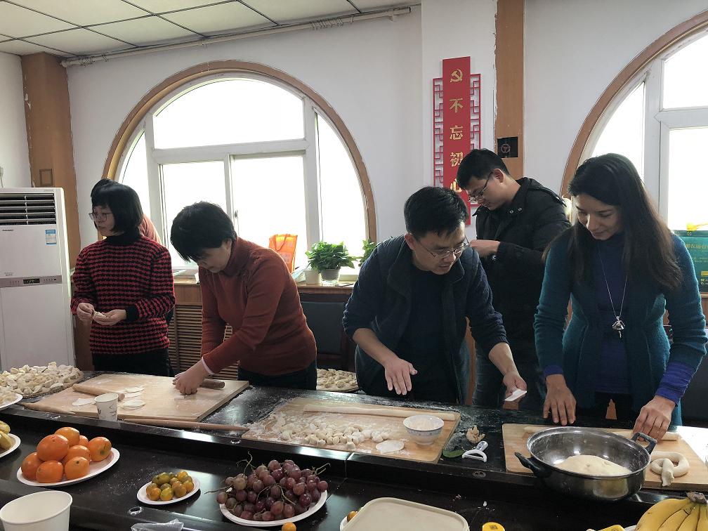 高尔基说:“工作愉快,人生便是天堂。”幸福是一种心灵的体验,要用心去感受,要用情去触摸。幸福是人生的主题,只有感到幸福的人,其人生才是充满快乐和阳光的,体验幸福就是一种快乐。教师的职业幸福感不只是生活上的满足,更在于追求幸福教育,这也是教育所追求的目标。冬至来临,按照中国传统习俗,当天要吃饺子。为了让教职员工和外籍教师在工作之余,体验传统节日文化的魅力和快乐,学院分工会特别请张明梅老师提前为大家准备了充足的荤、素两种馅料,教职工分为四个组,没有课和上完课赶到的老师们,有的擀片、有的包饺子、有的拌菜、有的煮饺子,忙的不亦乐乎。吃着热腾腾、香喷喷的饺子,品尝着酸爽可口的凉拌菜,教职工们充分感受到了今年会官方网站这个大家庭的温暖!