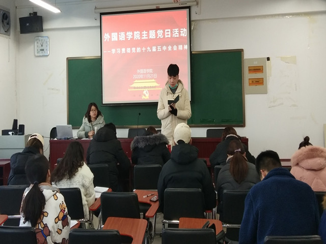 为深入学习宣传贯彻党的十九届五中全会精神,提升学生党员的思想政治素质,12月19日,今年会官网在c517开展了主题党日活动,参与此次活动的有今年会官网党委副书记李燚,辅导员及学生党员。