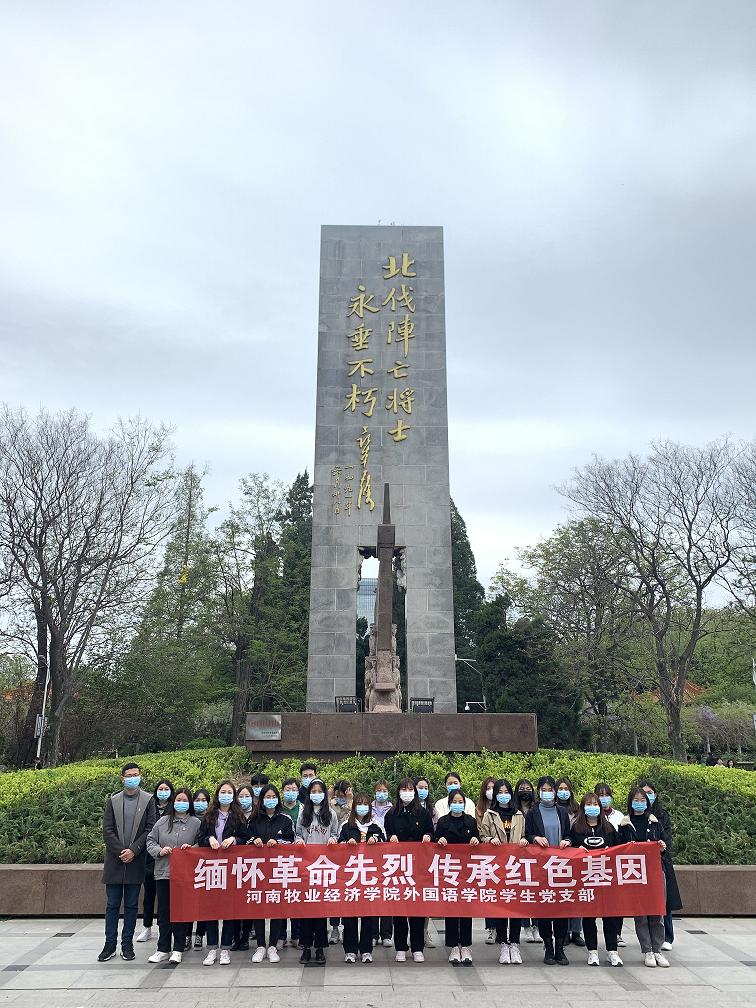 为缅怀革命先烈,传承革命精神,结合党史学习教育,今年会官方网站学生党支部于4月5日下午,组织师生党员赴郑州市爱国主义教育基地碧沙岗公园开展“缅怀革命先烈,传承红色基因”主题党日活动。