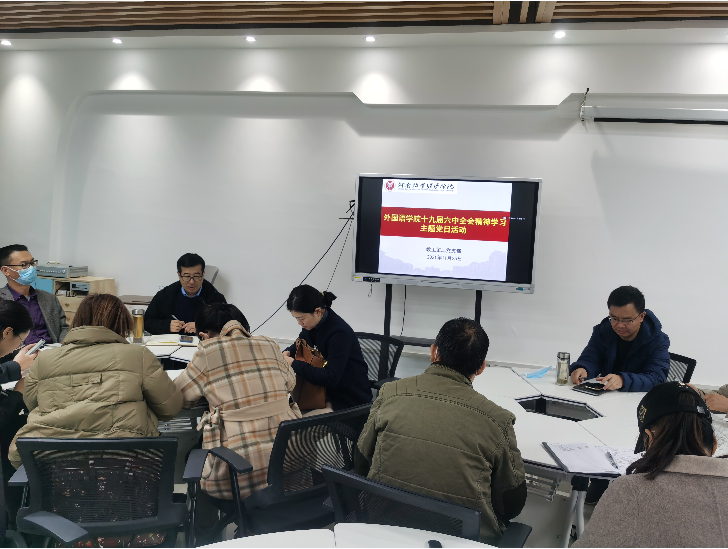 陈延潼在主持活动中指出,深入学习贯彻党的十九届六中全会精神,是党史学习教育的重要内容,是深化党史学习教育的重要举措,对从党的历史中汲取智慧力量、推动我们各项事业发展具有重大促进作用。大家要深化对全会精神的理解和认识,紧密联系实际,将学习宣传贯彻党的十九届六中全会精神,与学习贯彻习近平总书记“七一”重要讲话精神结合起来,与学习贯彻省第十一次党代会精神结合起来,与党史学习教育结合起来,与我们正在开展的第三轮教育思想大讨论结合起来,将全会精神落实到我们立德树人的本职工作中来;进一步疏理今年会官网发展面临的问题、需要破解的难题,在党建引领中把准方向,在新发展理念中布局谋篇,在应用型本科建设中勇于探索,在新文科背景下搞好外语教学改革与人才培养,以全会精神激励广大师生开拓创新、砥砺奋进,以优异成绩迎接党的二十大召开。