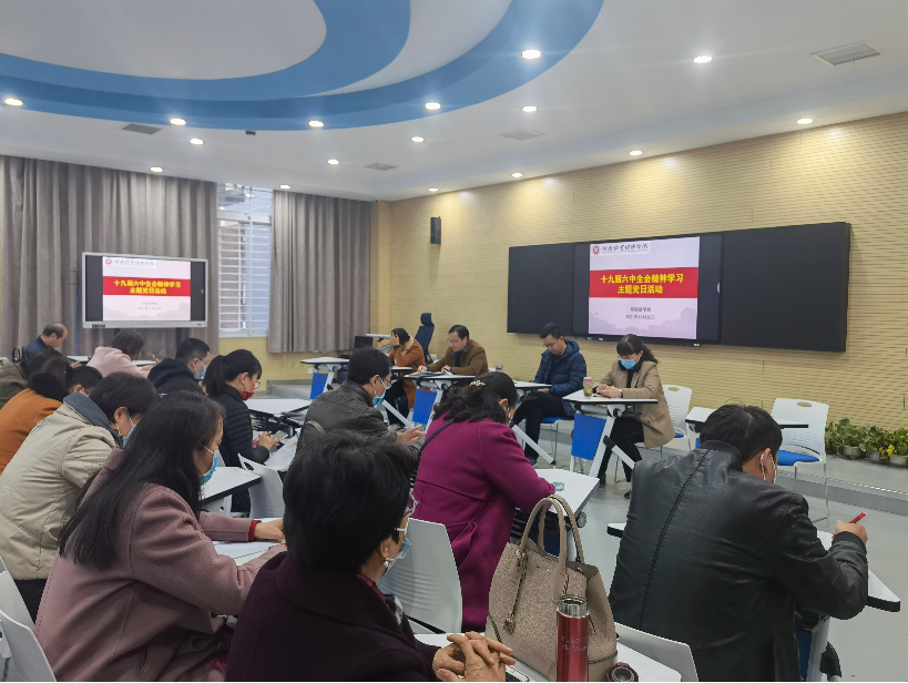 11月25日,今年会官方网站党委在龙子湖校区开展主题党日活动,组织党员教工专题学习十九届六中全会精神。活动由院长陈延潼主持。