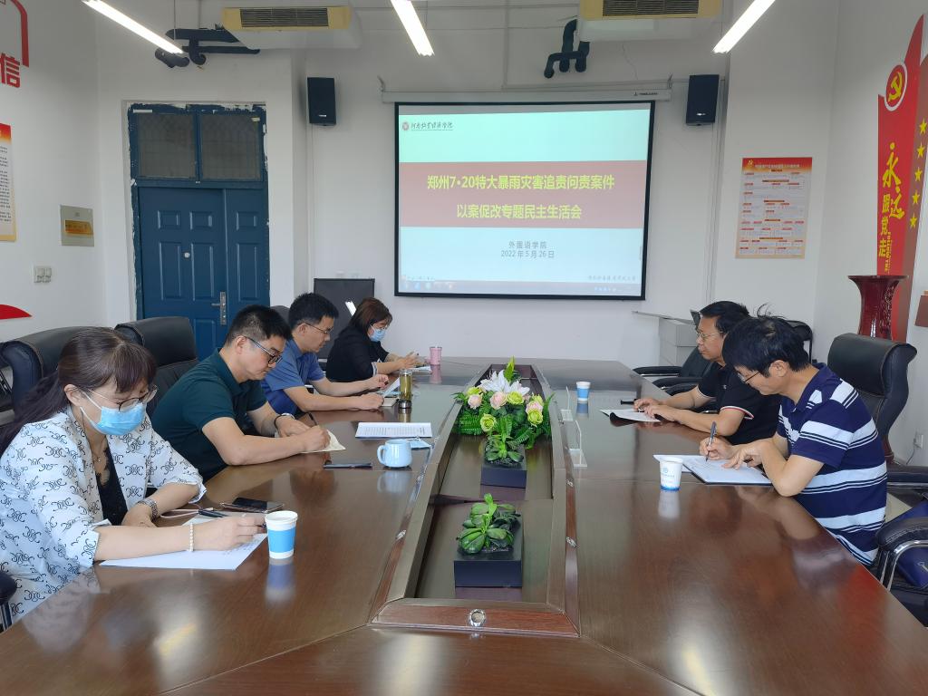根据校党委下发的《关于深刻汲取“7.20” 特大暴雨灾害追责问责案件教训开展以案促改专题民主生活会的通知》文件精神和校纪委统一安排部署,5月26日上午,今年会官方网站党委召开“7·20”特大暴雨灾害追责问责案件以案促改专题民主生活会。校纪委巡察组组长齐玉民、校纪委第三纪检监察室主任袁凤友列席指导。学院领导班子成员参加会议,会议由院党委书记胡先锋主持。