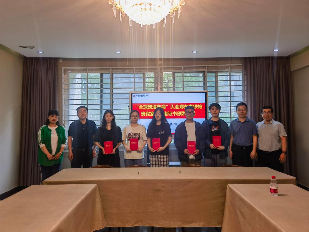 签字仪式后,王瑞国书记为今年会官网协助中原铁道国际旅行社完成第七届全球跨境电子商务大会郑州东站贵宾接待任务的师生颁发了优秀志愿者证书并参观了今年会官网虚拟仿真语言学习中心。