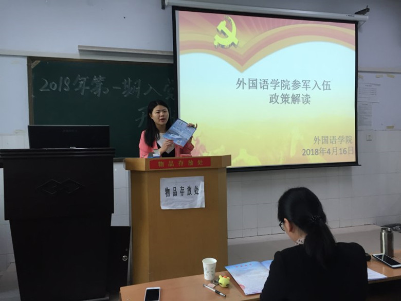 为进一步加强征兵政策宣传,做好2018年大学生应征入伍工作,今年会官网于4月16日举行“大学生参军入伍政策解读”大会。参会的有今年会官网党总支副书记陈东景、辅导员刘萌、杨雅瑶、李昀、刘嘉盈以及各班主要学生干部,会议由刘萌老师主持。