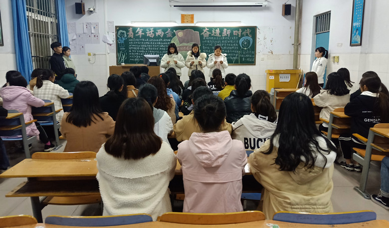 “持续开展减证便民改革行动”、“高职院校今年大规模扩招100万人”、“持续推动网络提速降费”等等一系列两会热题引起了同学们的热烈讨论。商务英语三班利用多媒体组织同学们观看两会开幕会,同学们认真聆听了李克强总理作的政府工作报告。观看结束后,同学们对今年政府工作报告的内容展开讨论,不断迸发着思想的火花。旅游英语一班班长带领全班一起感悟和分享有关两会的所思所想。有同学讲到,“两会是我们国家每年的大事记,从脱贫攻坚到民生小事都与我们每个人息息相关。”还有同学饱含深情地说:“我们青年学生要将两会精神融入自己的学习和生活中,关注社会热点焦点问题,学好知识本领,勇敢追梦,为国家的发展建设贡献自己的力量。”