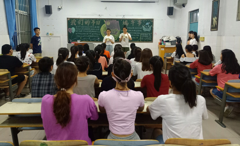 商务英语一班团支书以讲述端午小故事的形式,使同学们充分了解端午节的历史渊源,了解到端午节是为纪念屈原宁死不屈、坚韧不拔的精神,增强了对我国传统文化精神内涵的认同。应用英语二班班长放映与端午节习俗相关的视频,使同学们了解到更多端午节的活动,如包粽子、划龙舟比赛、挂艾草等。旅游英语一班的学习委员组织同学们讨论端午节的意义。有的同学认为端午节蕴含了丰富的地域民俗风情,是我国传统文化不可或缺的一部分;有的认为端午节承载着深厚的历史底蕴,使人们铭记历史,以史为鉴。