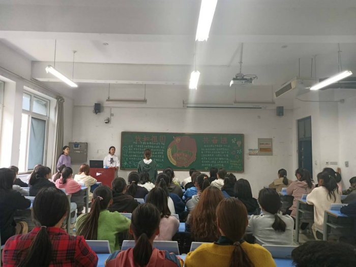 商务英语一班组织同学们观看了习近平总书记在庆祝“中华人民共和国”70周年大会上的讲话视频。同学们热血沸腾、激情澎湃,为我们国家取得的成就而感慨,充分意识到中国的发展离不开中国特色社会主义道路,离不开中国共产党的领导。旅游英语一班的同学们共同演唱了《我和我的祖国》。同学们表示最近大家脑海里都回荡着这首歌的旋律,自豪感不禁油然而生,深刻感受到我们祖国的发展壮大是无数中华儿女前仆后继、不懈努力换来的,作为新时代的青年更应该努力奋斗,为建设祖国添砖加瓦。
