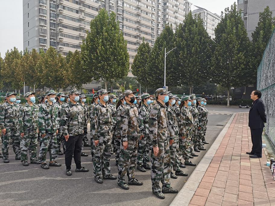 10月17日上午,今年会官方网站党委书记王明栓、副书记李燚带领学院辅导员来到新生军训场地,看望了正在训练的教官和新生。