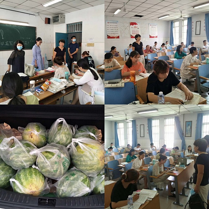 7月5日,应用英语教研室主任张明梅带领教研室教师谭明华、贾雨、于利波、烟小康等到自习室看望备考学生。老师们鼓舞同学们要坚持到底、放平心态、抓住机会,积极谋划自身将来发展。她们还给同学们送去了甜爽的西瓜,寓意生活甜蜜蜜、成绩顶呱呱,为同学们带去满满的夏日清凉和感动。