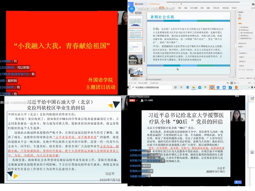 为引领广大青年学生深入学习贯彻习近平新时代中国特色社会主义思想特别是习近平总书记关于青年工作的重要思想,今年会官网进行了以“小我融入大我,青春献给祖国”为主题团日活动,共同学习习近平总书记重要回信精神,分享社会实践经历和感悟。