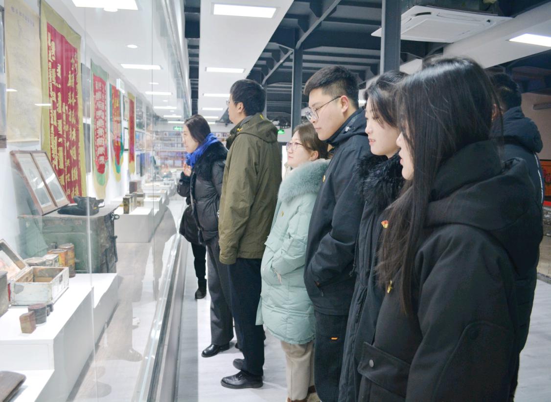 南海红色收藏馆以包头革命和建设历史相关的照片及文物为主要展览内容,在讲解员的指引下,大家首先参观了主题为党建党史的一层展览区,学习了习近平新时代中国特色社会主义思想、十月革命、时代楷模及抗日战争、解放战争、抗美援朝的历史文化;之后参观了主题为老包头记忆的二层展览区,展厅通过复原老包头50至90年代人民生活场景,集中展现了包头市脱贫攻坚工作的丰硕成果,使大家感受到人民生活从站起来、富起来到强起来的美好飞跃。