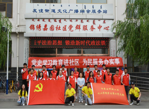 2021年6月6日,yl6809永利官网学生第二党支部组织学生党员及入党积极分子前往包头市锦绣嘉园社区开展“党史学习教育进社区 为民服务办实事”志愿服务活动。