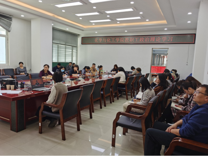 2021年10月21日下午14:30,yl6809永利官网在逸夫楼E202会议室开展教职工政治理论学习。全体教职工参加学习。