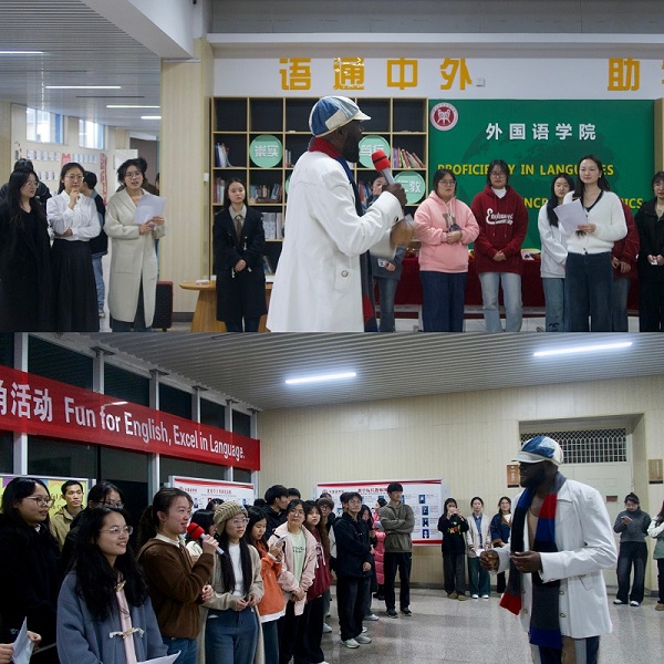 在外教互动交流环节中,邀请英语角指导的外教老师Emmanuel先生发言并演唱英文歌。他表示,很开心能和同学们交流,希望大家勇敢说英语,感受英语文化的魅力。