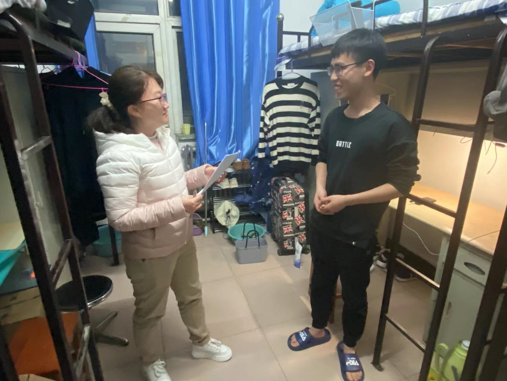 本次工作重点检查宿舍卫生、消防安全和用电安全,提醒同学们及时整改宿舍中存在的问题,努力创建“文明宿舍”。走访过程中,两位老师与研究生进行深入交流,了解学生们的生活、学习及科研情况,教育引导广大研究生自觉遵守校规校纪及公寓管理制度,禁止在宿舍内给电动车充电,杜绝晚归、夜不归宿、在宿舍吸烟、酗酒等不良行为,展现科大学子良好的精神风貌。