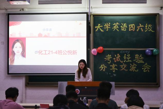 本次活动邀请化工21-4班公悦新、化工21-4班李岩、化22-7班梁芳琳和原化工学院化21-6班邓焰才4位同学进行分享,他们以四六级考试“听力、阅读、翻译、写作”四大板块为主线,详细介绍了攻克考题重难点、合理制定学习计划和探索适合自身的学习方法等方面的经验,耐心解答同学们提问,激发同学们学习英语的兴趣。活动结束后,同学们纷纷表示收获颇丰。