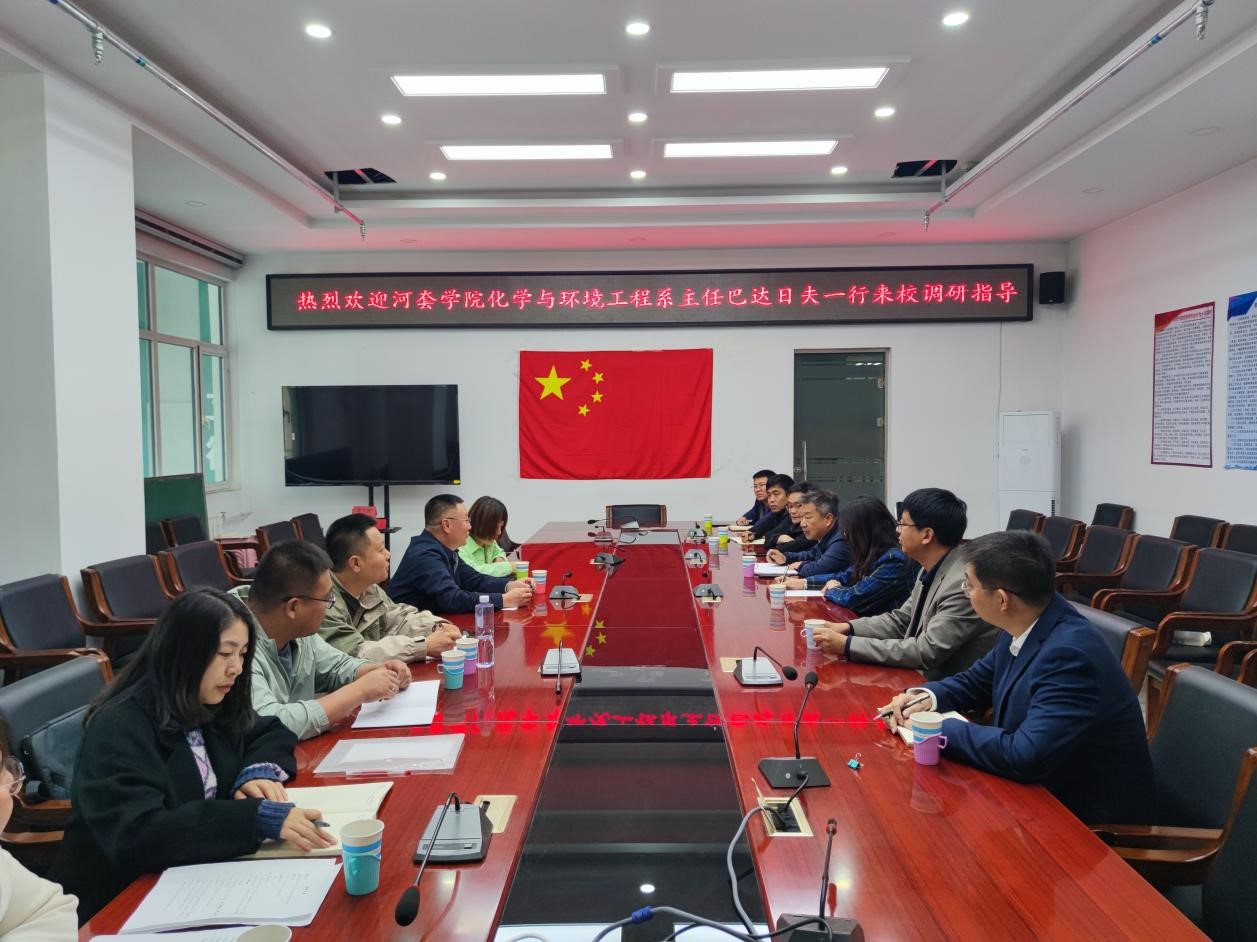李松波对巴达日夫主任一行的到来表示热烈的欢迎,并介绍了学院的发展历程、学科、专业特色以及硅业学院建设情况,分享了人才培养OBE理念的实施与成效。巴达日夫介绍了河套学院化学与环境系的基本情况。双方就人才培养模式、师资队伍建设、课程建设、教科研建设、实践教学、毕业生就业、创新创业、3+1人才培养模式、专业审核评估、学科发展等问题开展深入交流。