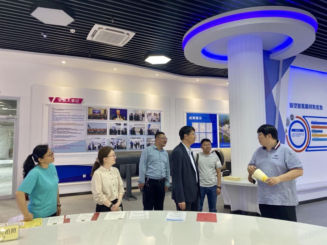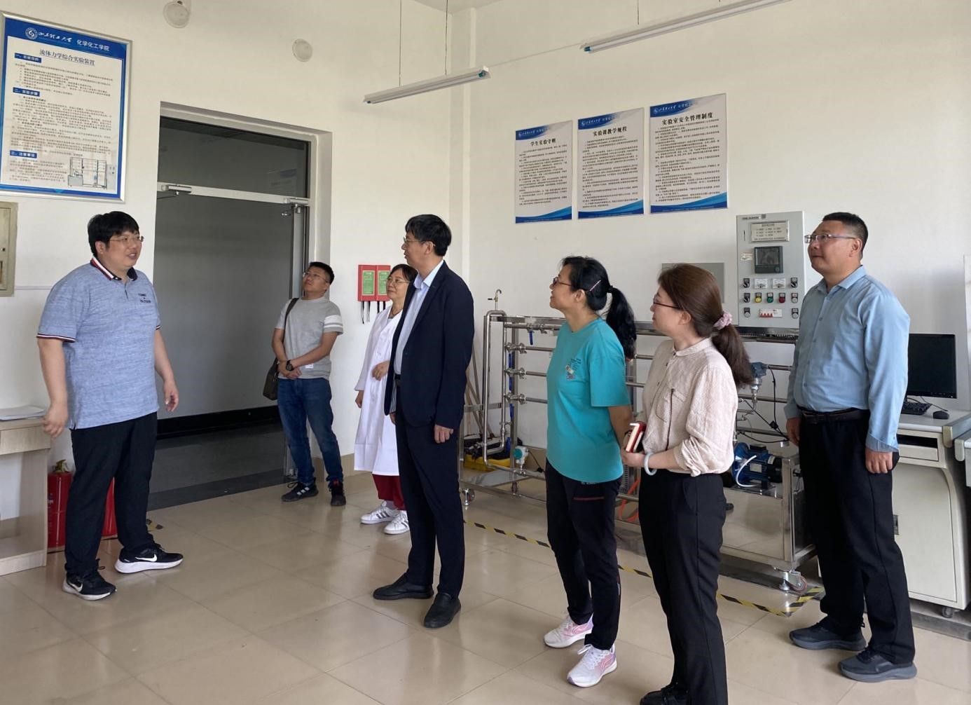 座谈会前,化学化工学院副院长黄昊飞带领永利官网一行参观了化学化工实验实训中心、聚氨酯研究院、清洁化工技术研究院,双方就专业实验室建设、社会服务等方面进行交流。