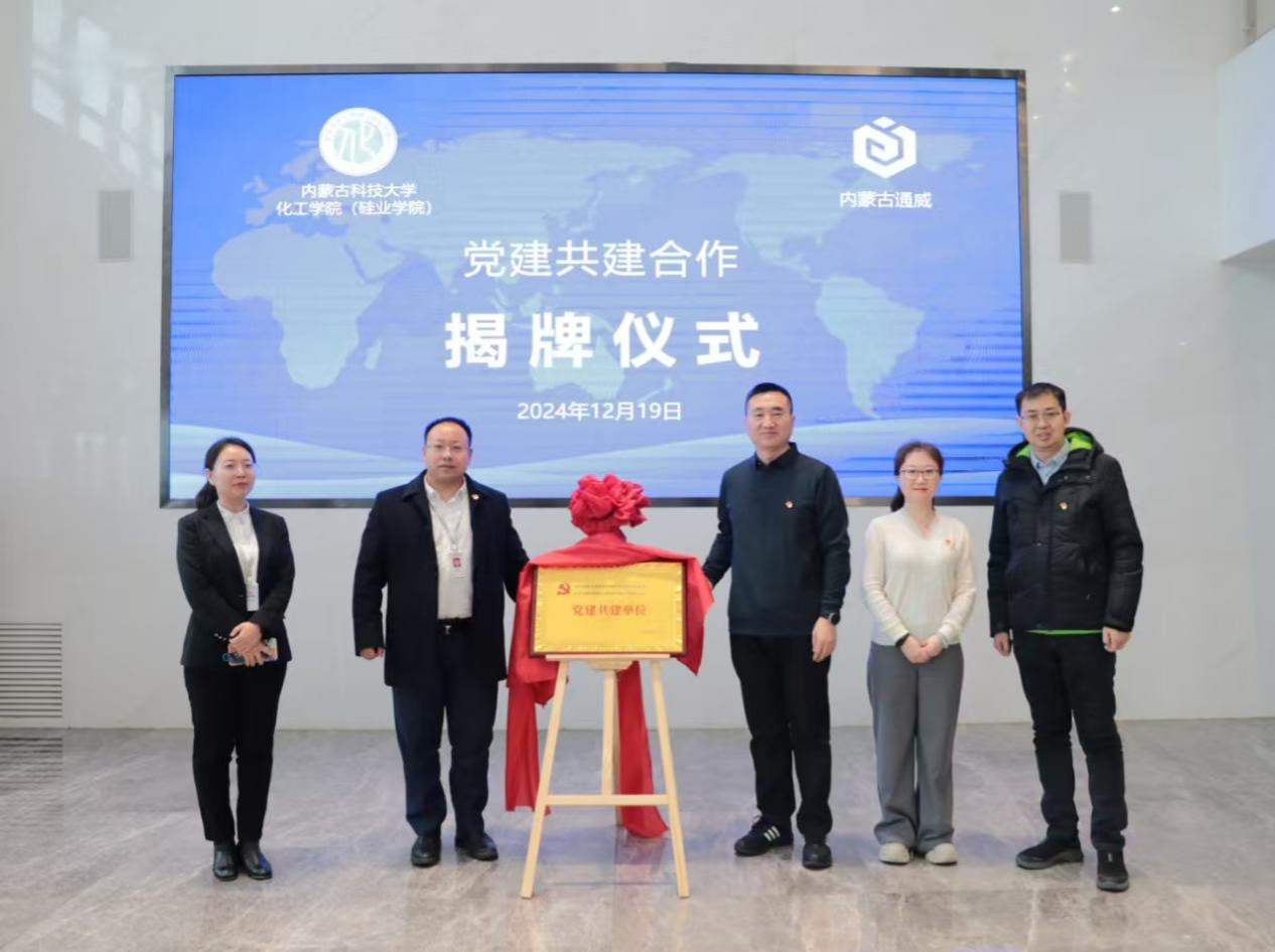 为进一步发挥校企联动机制作用,切实将支部结对共建工作落到实处,高质量推进党建引领校企融合发展,12月19日,中共yl6809永利官网委员会与中共内蒙古通威高纯晶硅有限公司支委会“党建共建单位”签约仪式在内蒙古通威集团会议室举行。永利官网党委书记杨包生、副书记副院长冀虹、副院长赛华征,内蒙古通威高纯晶硅有限公司总经理助理、党支部书记赵沿,人力资源部部长周美香及相关人员参加了签约仪式。