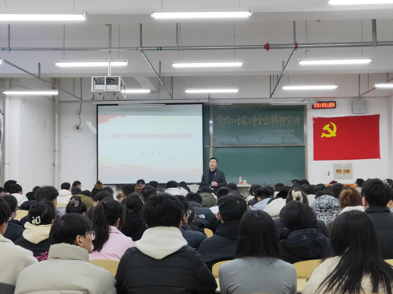 为进一步推动党的二十届三中全会精神入脑入心、走深走实,让广大党员全面深刻领会全会精神,12月26日下午,永利官网在逸夫楼G203举办党的二十届三中全会精神主题党课,院党委书记杨包生主讲,学院100余名师生党员参加。