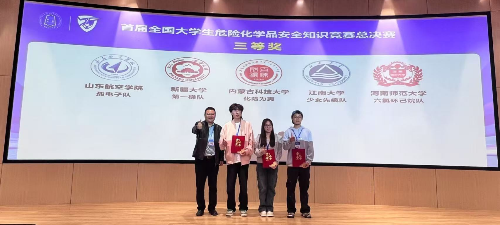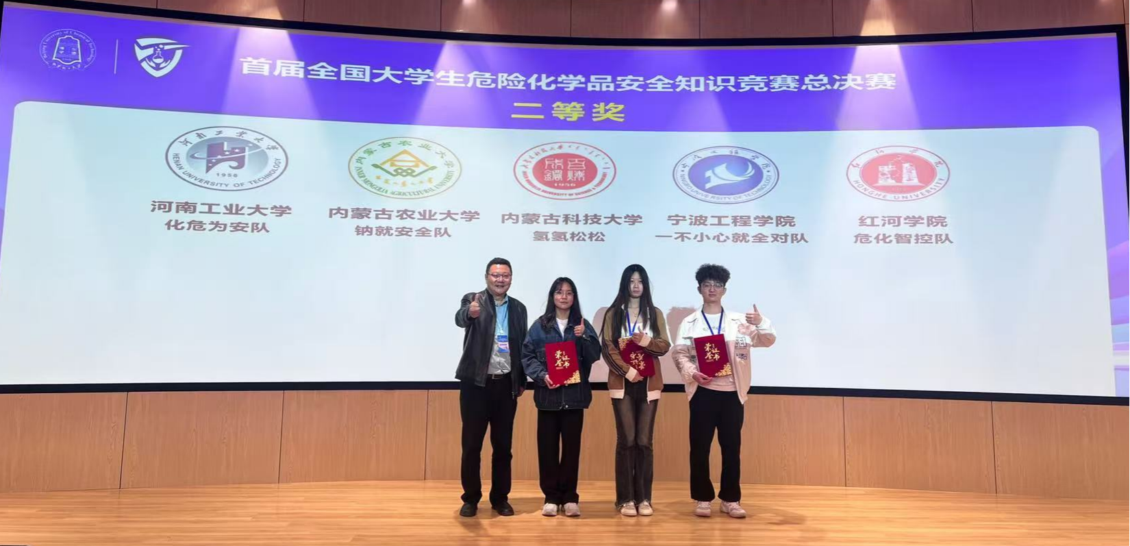 4月19日,首届全国大学生危险化学品安全知识竞赛总决赛在北京化工大学昌平校区拉开帷幕。来自49所高校的88支精英队伍展开激烈角逐,我校"氢氢松松"队与"化险为夷"队凭借出色表现,从南京大学、四川大学等强校中脱颖而出,分获团体二等奖、三等奖,展现了我校在化工安全领域的教学实力。