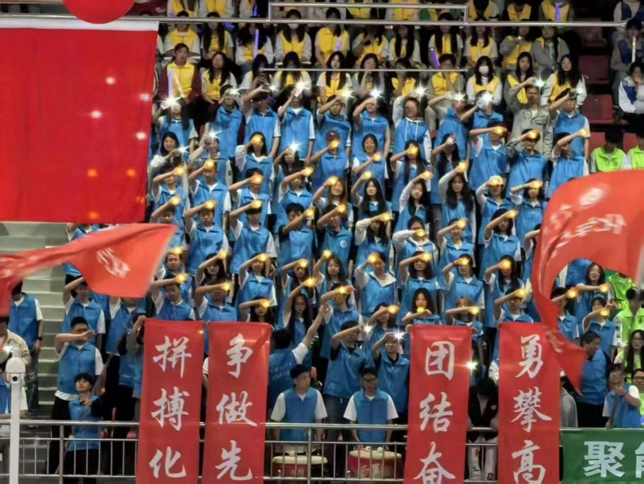 看台上,由永利官网师生组成的助威团成为赛场一道亮丽的风景线。"化工辉煌"的呐喊声此起彼伏,精心设计的横幅标语格外醒目。助威团成员手持星星灯,随着音乐节奏挥舞,宛如一片流动的星河。整齐划一的口号、创意十足的助威方式,充分展现了永利官网师生的凝聚力与创造力,最终荣获"最佳助威团奖"实至名归。