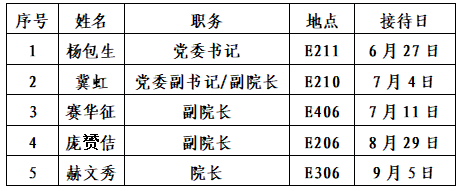 为进一步畅通师生诉求反映渠道,健全民主管理机制,现将院领导接待日工作安排如下: