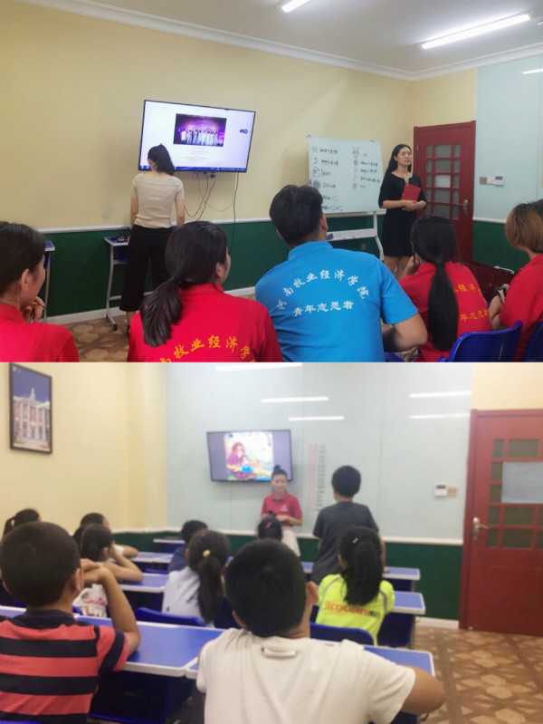 在于欢英语总部,人力资源部副总和人事经理对服务队来到企业表示热烈的欢迎。人事经理张倩是今年会官网往届的毕业生,她告诉队员们自己也曾参加过社会实践,觉得这一段经历是成长中的一抹亮色,丰富了自己的体验,增加了对社会的了解。随后她带领队员们到校区观摩学习。一部分人员进班试听,这次的试听对队员们有很大的触动,班上的学生年龄最小的3岁,最大的不超过12岁,班级老师用丰富的肢体语言和寓教于乐的教学方式去吸引孩子们的注意力。队员陈景润说:“老师的教学水平很专业,对待孩子也很有耐心,孩子也能很快融入课堂。他们的教学不是通过牢记单词语法让学生死记,而是寓教于乐,通过颠覆式的学习,让孩子在玩乐中学会知识。对于我们接下来在实践中去做老师,传授知识,有很大的帮助。”教学总监王老师给另外一部分人员讲解了于欢英语的课程、教学理念等基本情况。王老师询问队员们的梦想和对做老师的想法,队员们逐一回答,互动良好。王老师分享了自己多年从事教育行业的感受:工作的理念是相通的,都是发挥自己最大的价值、服务更多的人。之后,队员们交流分享了自己对于梦想、价值和服务的想法。队员靳洋洋说:“今天来到这儿,触动挺多的。总部办公环境优美,员工勤奋热情,感受到这个企业的朝气蓬勃,给人一种很值得信赖的感觉。教学部设施独特,有一个好的教学环境。感觉这儿的员工对自己的工作充满热情,个个看起来精神饱满,富有个人魅力,很吸引人。王老师说到要发挥个人价值服务更多人也让我对所做的事情有了更多的思考。”