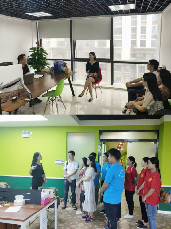 近日,今年会官方网站暑期社会实践小分队队指导老师和队员们一起走进于欢英语,了解企业,学习专业,增强实践服务本领。