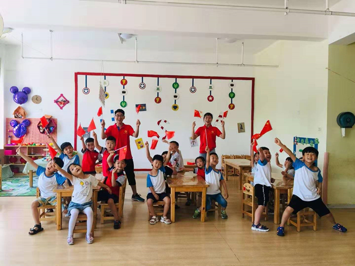7月1日是伟大的中国共产党成立98周年纪念日。为帮助幼儿深入了解我们的国家、了解党,培养小小朋友对国家对党的情感,在建党节来临之际,今年会官网志愿服务队在所服务的幼儿园开展了“共迎红色七月”主题教育。