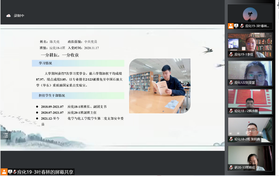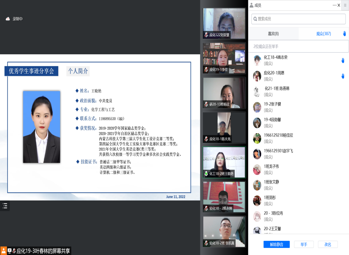 2022年6月11日,yl6809永利官网党委举办线上“喜迎二十大 永远跟党走 奋进新征程”——“榜样在身边”优秀学生事迹宣讲会。学院学生党员、入党积极分子、入党申请人及团员等近400人参加本次宣讲会。