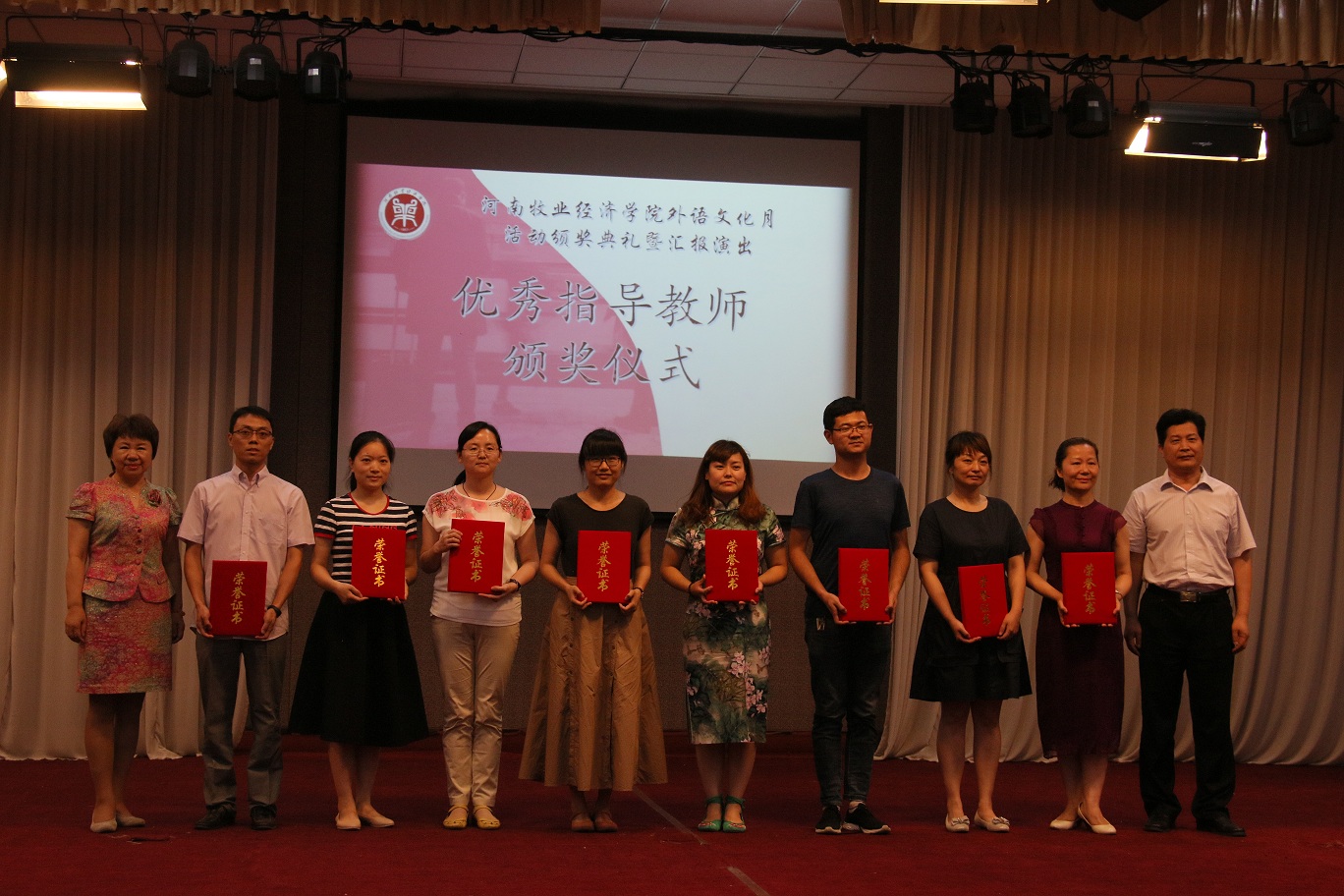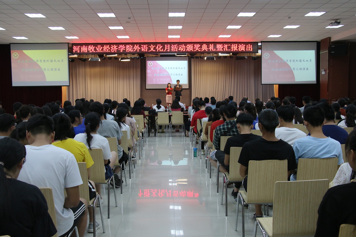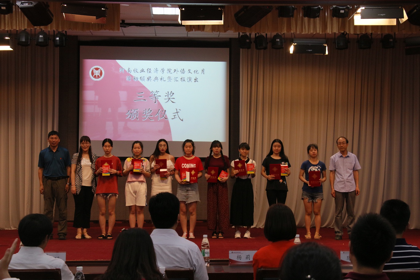 随着一系列比赛活动的结束,6月14日下午四点,今年会官方网站在龙子湖校区大学生活动中心举办了“河南牧业经济学院外语文化月活动颁奖典礼暨汇报演出”,总结外语文化月系列活动并进行成果展示。副校长许圣道,校党委机关工委书记王建昌,学工部部长、学生处处长张广芝,团委副书记杨莉以及今年会官方网站党政领导莅临本次活动。
