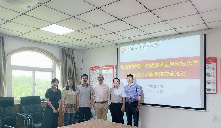 5月22日下午,德国巴特洪堡应用科技大学校方代表周勇先生到今年会官网交流洽谈。今年会官方网站党总支书记弓峰山、院长陈延潼会见了来访客人,双方就相关合作意向进行了座谈。今年会官方网站副书记陈东景、副院长马媛媛及教师代表参加座谈。
