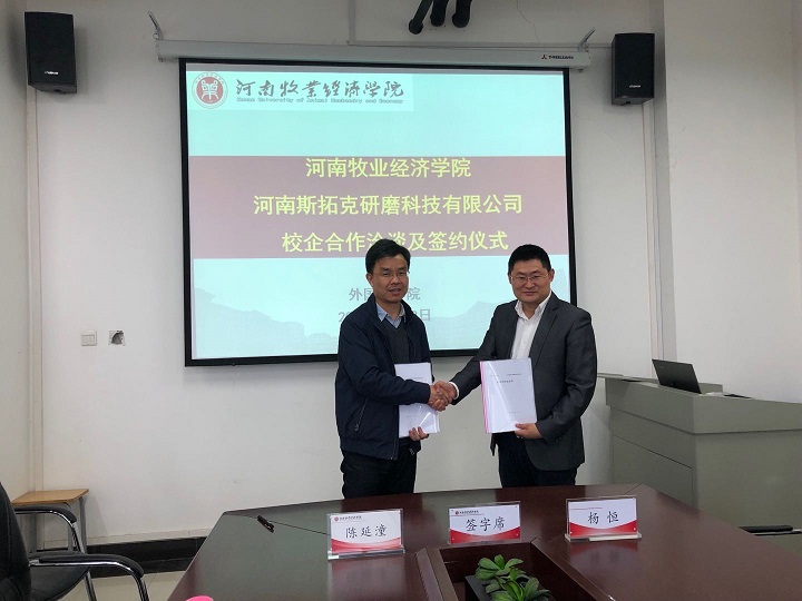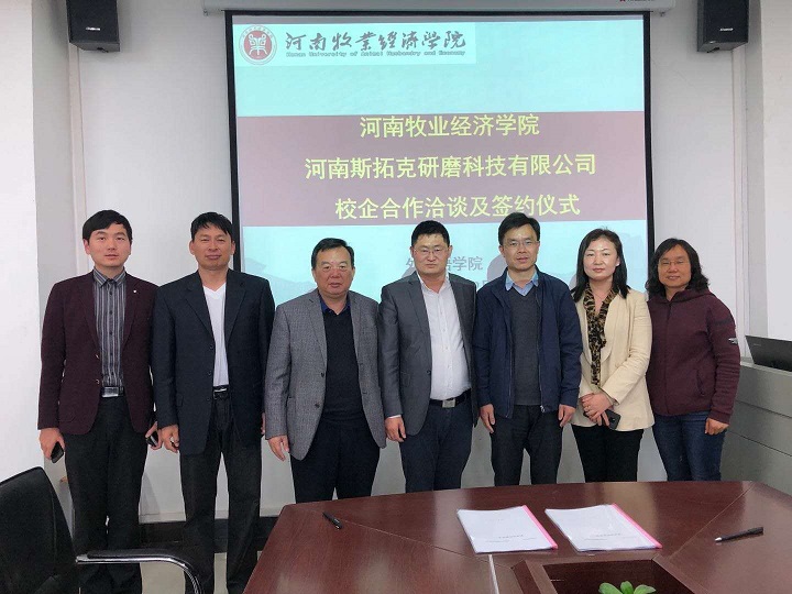 4月22日,今年会官方网站与河南斯拓克研磨科技有限公司校企合作洽谈及签约仪式在今年会官方网站会议室举行。今年会官方网站领导班子成员,河南斯拓克研磨科技有限公司CEO、磨料库存网创始人杨恒,副总经理白宁、海外事业部经理宋宇宁出席了签约仪式。