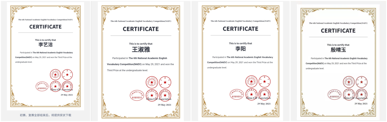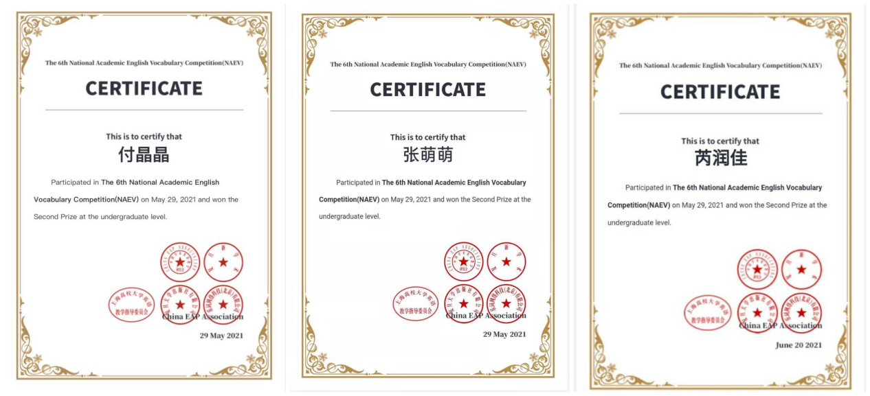 近日,由中国学术英语教学研究会、上海高校大学英语教学指导委员会主办的第六届全国学术英语词汇竞赛落下帷幕,本次大赛共吸引全国超过1000所高校学生约15.3万人报名参加。今年会官方网站积极组织学生参赛并获得佳绩,付晶晶等3名同学荣获全国二等奖,李艺洁等18名同学荣获全国三等奖,陈情等8名同学荣获全国优胜奖。