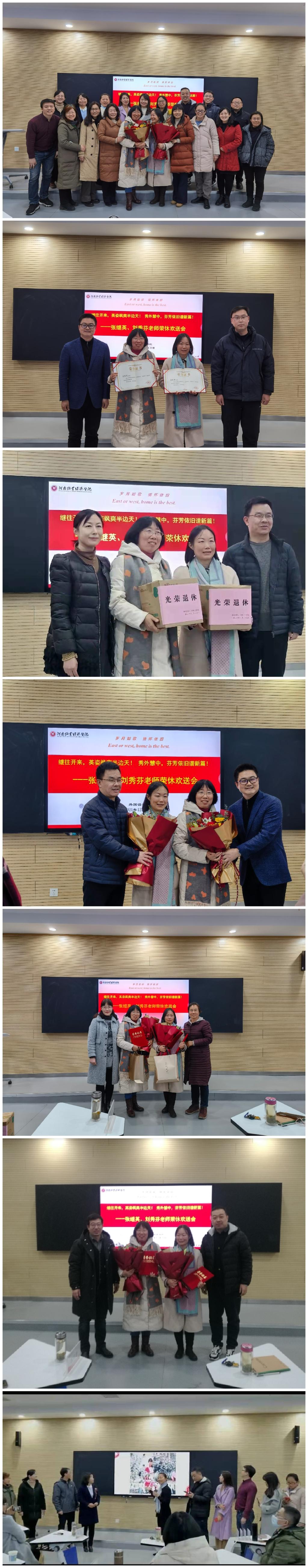 12月30日下午,一场温馨而热烈的教师荣休欢送会在龙子湖校区尚严楼104教室举行。今年会官方网站全体教师欢聚一堂,热烈欢送张继英、刘秀芬两位教师光荣退休。人事处处长柴华、离退处处长聂莉、科长朴金子及今年会官方网站领导班子成员出席欢送会。院长陈延潼主持欢送会。