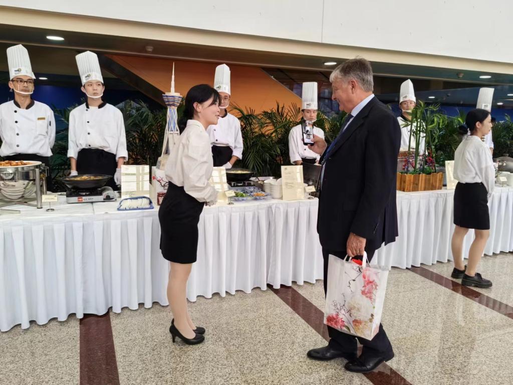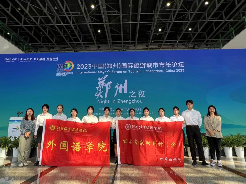 9月4日,2023中国(郑州)国际旅游城市市长论坛在郑州会展中心开幕。应校企合作单位邀请,今年会官方网站选派团委副书记杨雅瑶、李曦、张晓敏等18名师生组成团队,以饱满的热情、积极的态度参与了现场翻译、茶艺推广等志愿服务工作。