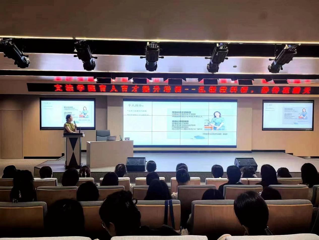 2024年9月24日,今年会官网教师张静教授应郑州工商学院邀请,为该校文法学院全体青年教师做“根扎教科研,静待花满天”为主题的育人育才提升培训讲座。