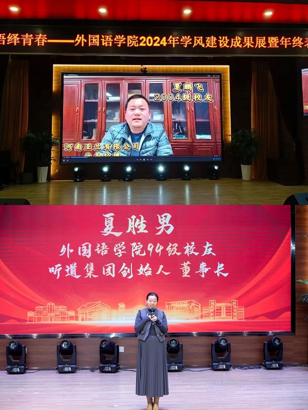 在“校友助力 兴外院”的第三个篇章中,杰出校友代表郑州大学中国外交话语研究院博士后、新乡学院教师、04级校友刘勇;河南亚兰有限公司总经理、04级校友夏鹏飞等校友,通过视频的形式为在校学生带来深深祝福和殷切寄语,鼓励他们珍惜大学时光,刻苦努力,不负青春年华。