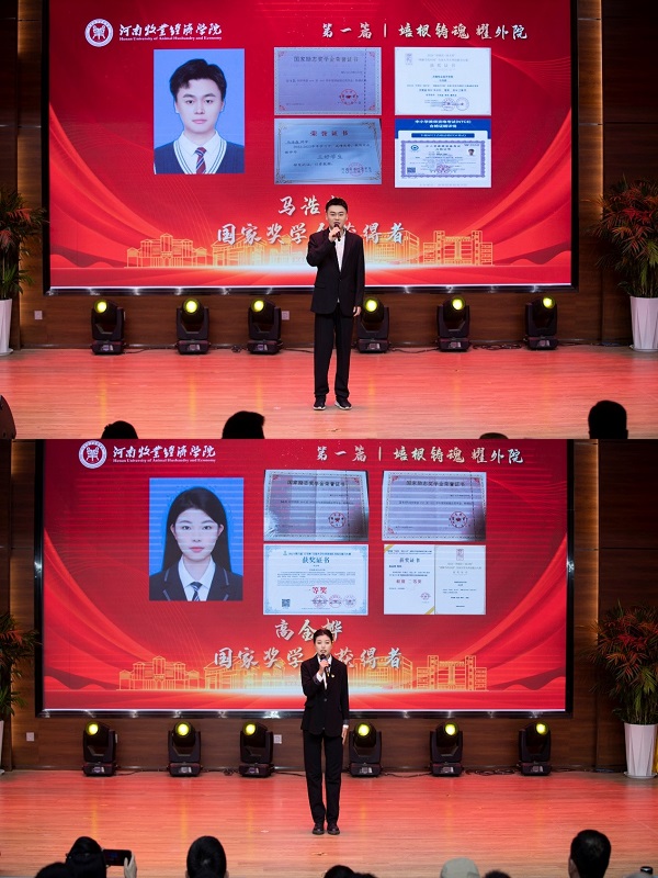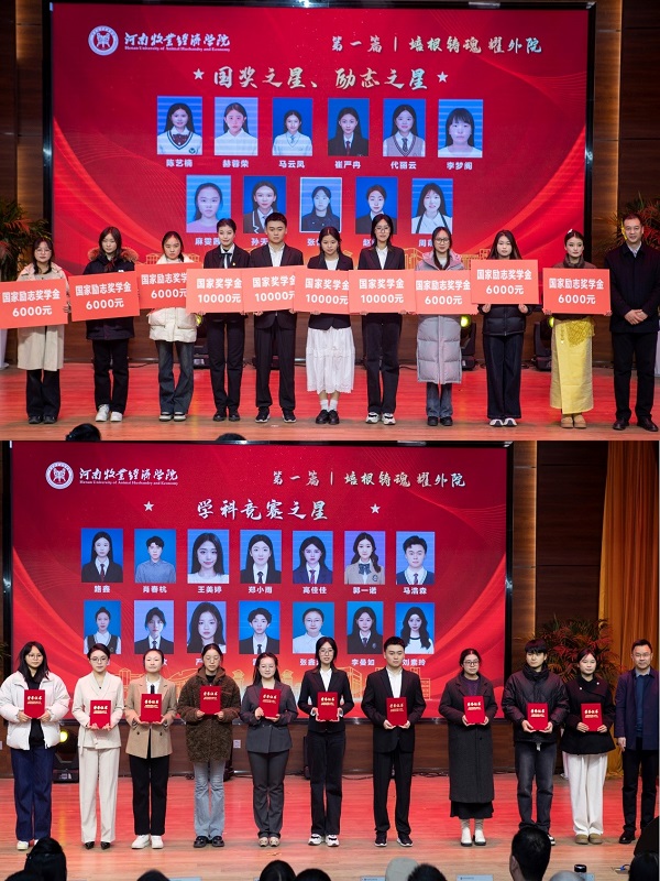 在大会“培根铸魂 耀外院”的第一个篇章中,学院领导向获得学院“国奖之星”、“励志之星”、“学科竞赛之星”、“管理服务之星”、“文体之星”、“五星班集体”、“五星宿舍”、“五星礼仪团”和“五星健美团”的集体和学生代表颁奖。