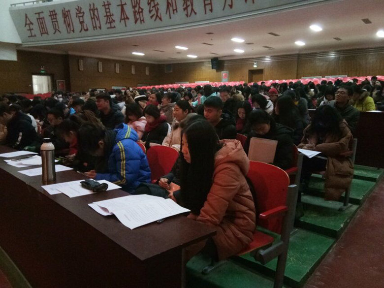 1月4日,外国语系在校大礼堂举行2018届毕业生实习动员大会。外国语系党政领导、各教研室主任及教师代表、全体辅导员老师以及15级商务英语专业和15级旅游英语专业的学生参加了此次大会。动员会由我系党总支副书记陈东景主持。